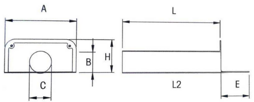 | Misura | L | L2 | A | B | C | E | H | Pz. per scatola | Dimensione Scatola |